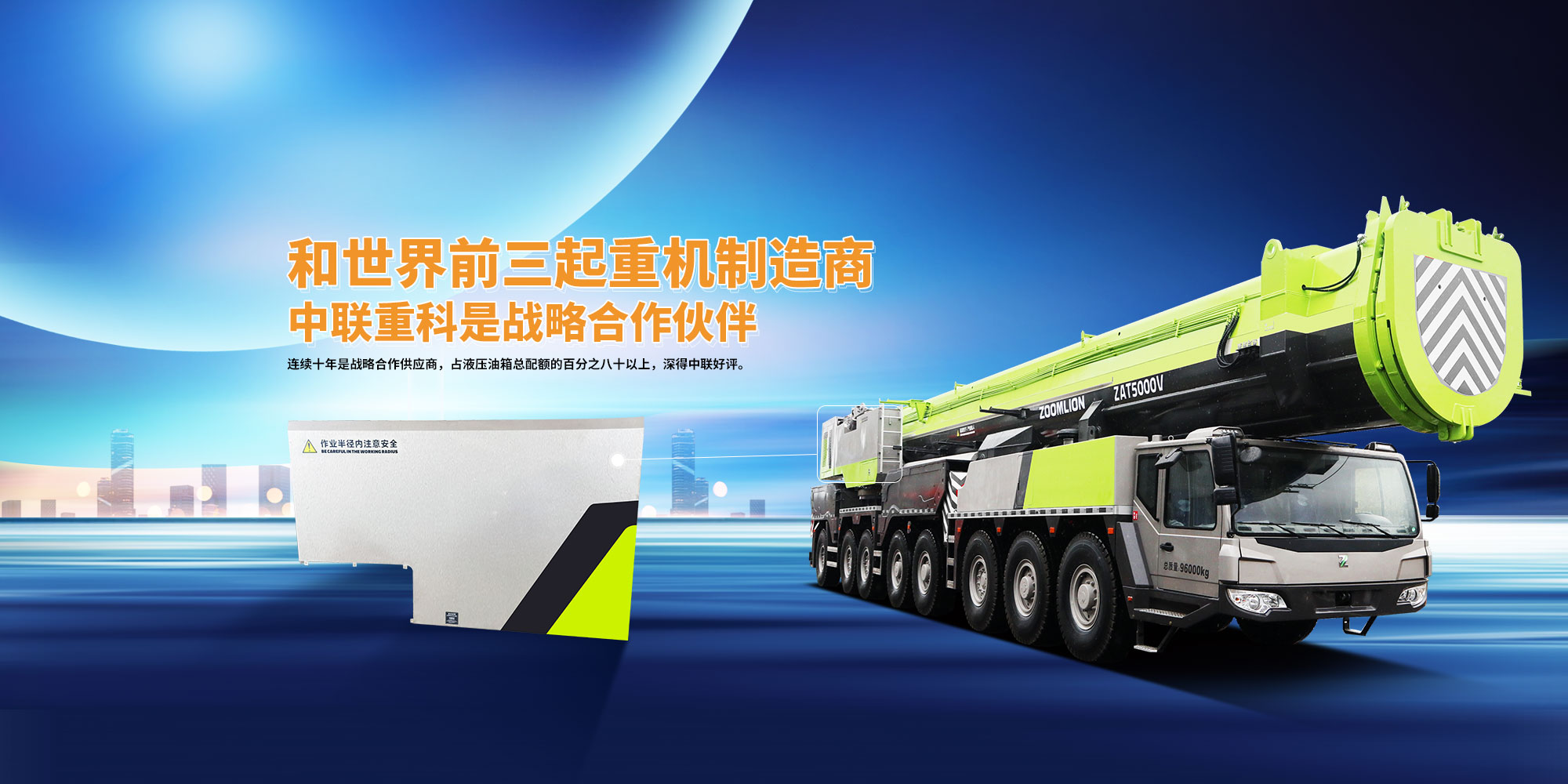 公司連續三年在長沙中聯重科環境產業有限公司是優秀供應商,在中聯汽車吊公司也是優秀供應商,并且連續十年是戰略合作供應商,占液壓油箱總配額的百分之八十以上,深得中聯的好評。